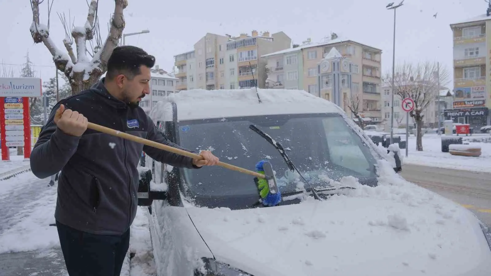 Karaman’da etkili olan kar yağışı vatandaşları sevindirirken kent genelinde de kartpostallık görüntüler ortaya çıktı. Dün akşam saatlerinde başlayan kar yağışı, ilerleyen saatlerde şiddetini artırarak sabaha kadar devam etti. Günün ilk ışıklarıyla birlikte bembeyaz bir manzaraya uyanan Karaman, adeta gelinlik giymiş görüntüsüyle dikkat çekti. Sabahın erken saatlerinde işlerine gitmek üzere evlerinden çıkan vatandaşlarsa karla kaplanan araçlarını kardan temizledi. Kentin önemli noktalarından Tarihi Karaman Kalesi, Aktekke Millet Bahçesi ve 15 Temmuz Demokrasi Meydanı beyaza bürünürken, ortaya çıkan manzaralar görenleri hayran bıraktı. Meydanda kar üzerinde dolaşan güvercinler ise güzel görüntüler oluşturdu. "Çok şükür beklediğimiz kar geldi" Kar yağışına sevindiğini söyleyen Ahmet Oğuz Karak, "Sonunda beklenen rahmet geldi. Allah’a şükürler olsun. Biraz yaşamımızı etkilese de bu da karın güzelliğidir. Vatandaşlarımız kar yağışını ve yağmuru çok bekledi, yollarını gözledi. Sularımızı tasarruflu kullanmamız gerektiğini bir kez daha öğrendik. Çok şükür beklenen kış geldi, inşallah yaz daha güzel olacak" dedi. Kent genelinde ve kara yollarında kar temizleme çalışmaları devam ederken, sağlık, polis, itfaiye, belediye ekipleri ise muhtemel durumlara karşı teyakkuz halinde bekliyor.