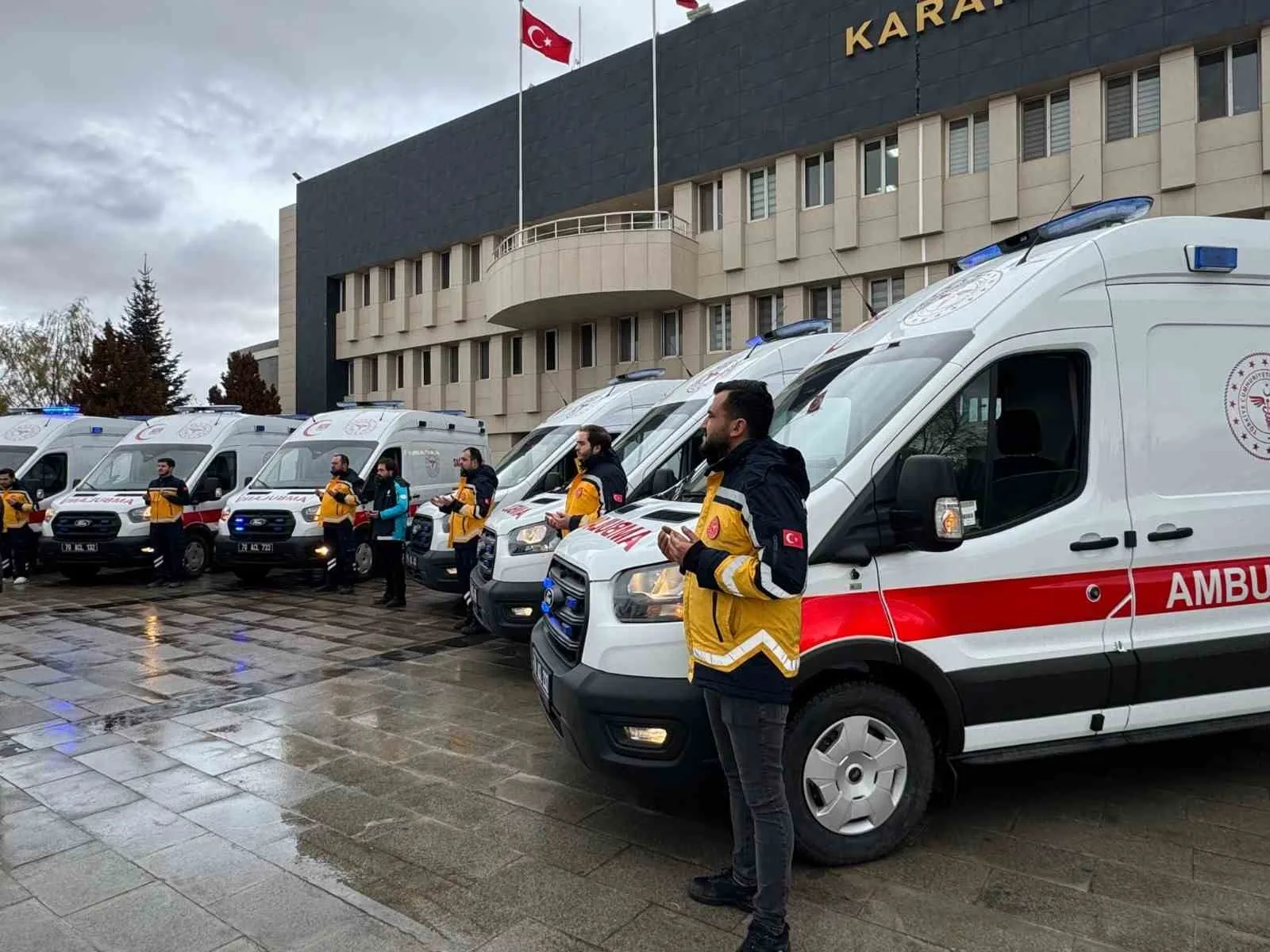Karaman’da hizmete alınan 6 yeni ambulans için teslim töreni düzenlendi. Karaman Valisi Mehmet Fatih Çiçekli, valilik bahçesinde düzenlenen törende, kentte sağlık altyapısının geliştirilmesi için çalıştıklarını söyledi. Sağlık Bakanlığınca tahsis edilen 6 araçla kentte hizmet veren ambulans sayısının 37 çıktığını belirten Çiçekli, yeni araçların hayırlı olmasını diledi. Hizmete alınan ambulanslar, dua edilmesinin ardından görev yerlerine uğurlandı. Törene, İl Emniyet Müdürü Mehmet Turhan, İl Jandarma Komutan Vekili Albay Mustafa Özdemir, İl Genel Meclis Başkanı Tamer Yıldızbaş, İl Sağlık Müdürü Dr. Mehmet Serkan Yurdakul, Milli Eğitim Müdürü Mehmet Çalışkan, İl Özel İdaresi Genel Sekreteri Ali Yener Terlemez, İl Müftüsü Faruk Gürbüz, AK Parti Karaman İl Başkanı Murat Öztürk ve sağlık personelleri katıldı.