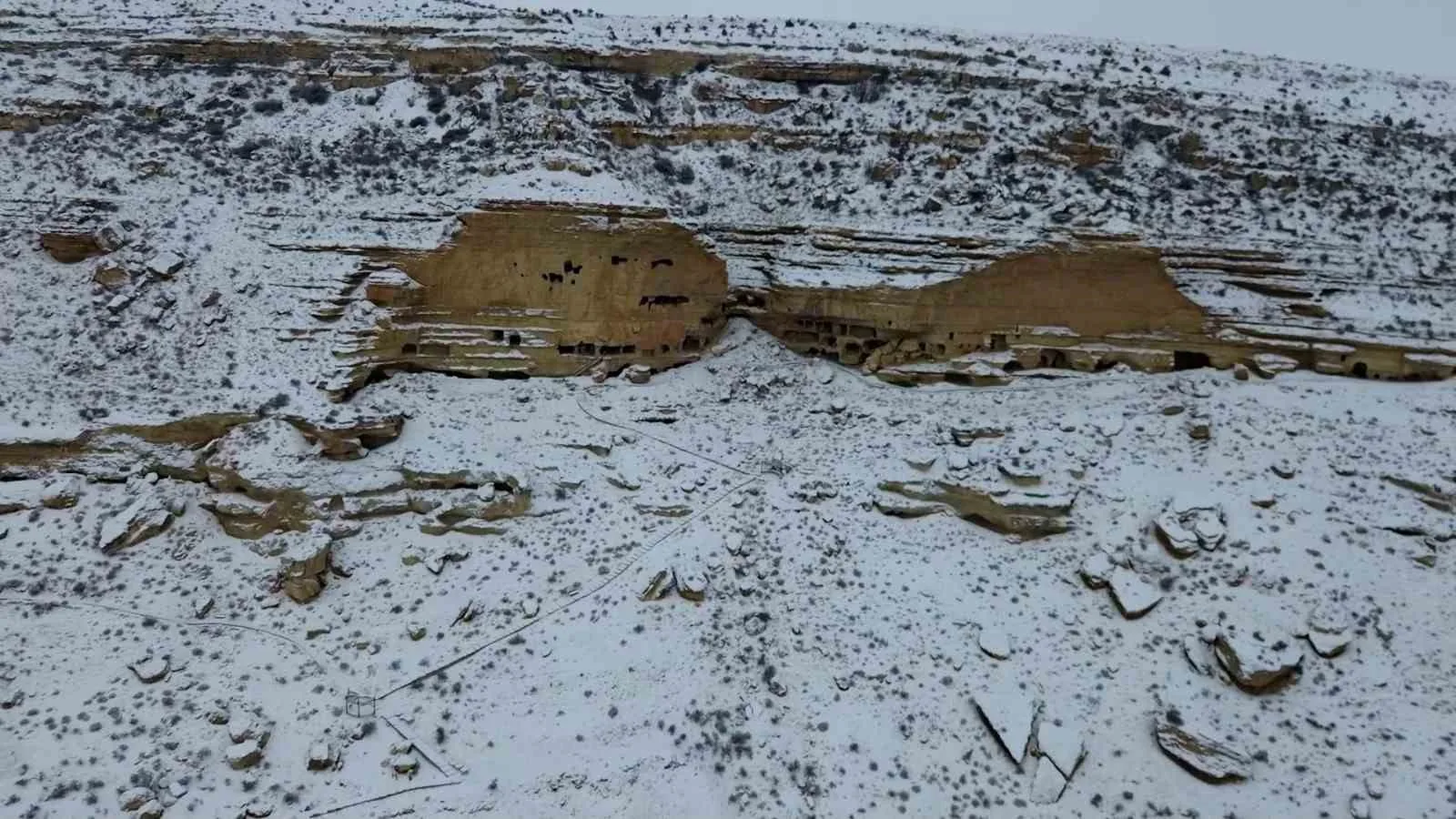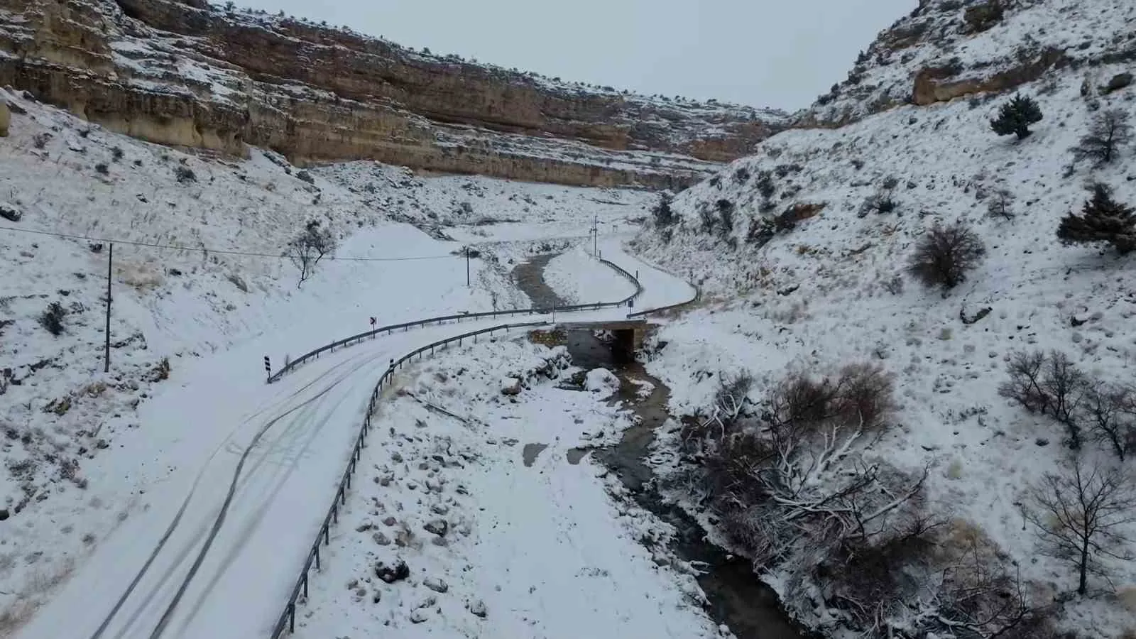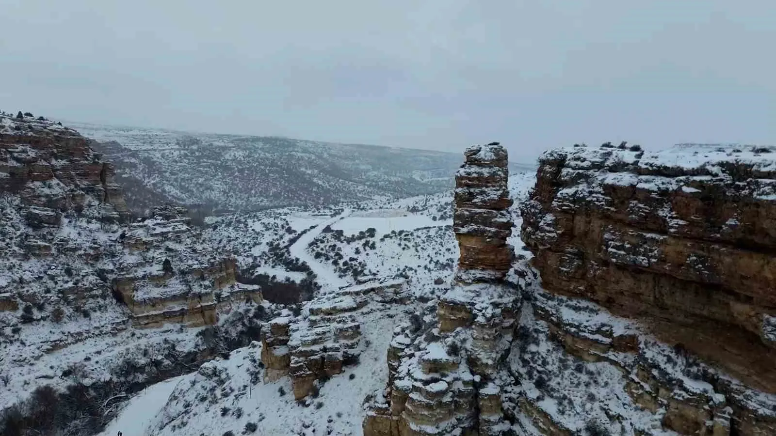Karaman’da etkili olan kar yağışının ardından, kent genelinde tarihi ve doğal güzellikler beyaz örtüyle kaplanırken, ortaya adeta kartpostalları aratmayan manzaralar çıktı. Özellikle Karaman merkeze bağlı Taşkale köyünde bulunan ve geçmişi yüzyıllar öncesine dayanan Taşkale Tahıl Ambarları ve Manazan Mağaraları kar yağışıyla birlikte eşsiz bir görünüme kavuştu. Kayalara oyularak yapılan ve bölgenin önemli tarihi mirasları arasında yer alan tahıl ambarları, beyaz örtüyle bütünleşerek görsel bir şölen sundu. Manazan Mağaraları çevresinde oluşan kar manzarası, bölgeye gelen ziyaretçilerin ve fotoğraf tutkunlarının ilgisini çekti. Karla kaplanan tarihi yapılar, geçmiş ile doğanın eşsiz uyumunu bir kez daha gözler önüne serdi. Amerikan kovboy filmlerindeki kanyonları anımsatan yapısıyla bilinen Yeşildere kanyonu ise kar yağışıyla birlikte adeta görsel bir tabloya dönüştü. Kanyonun derin yapısı ve karla kaplanan kayalıkları, farklı açılardan kartpostallık görüntüler oluştururken, ortaya çıkan bu manzaralar havadan dron ile görüntülendi. Tarihi ve doğal zenginliğiyle dikkat çeken Taşkale köyü, yalnızca doğal güzellikleriyle değil, kültürel ve sanatsal geçmişiyle de öne çıkıyor. Köy, bugüne kadar birçok film ve belgesel çekimine ev sahipliği yaparak, sinema dünyasında da kendine yer buldu. Manzarasıyla her mevsim ayrı bir görsel şölen sunan Taşkale’de, Kurtlar Vadisi dizisinde Elif karakterini canlandıran ünlü sanatçı Özgü Namal’ın başrolünde yer aldığı ve 2007 yılında vizyona giren Mutluluk filminin bazı sahneleri de bu bölgede çekilmişti.