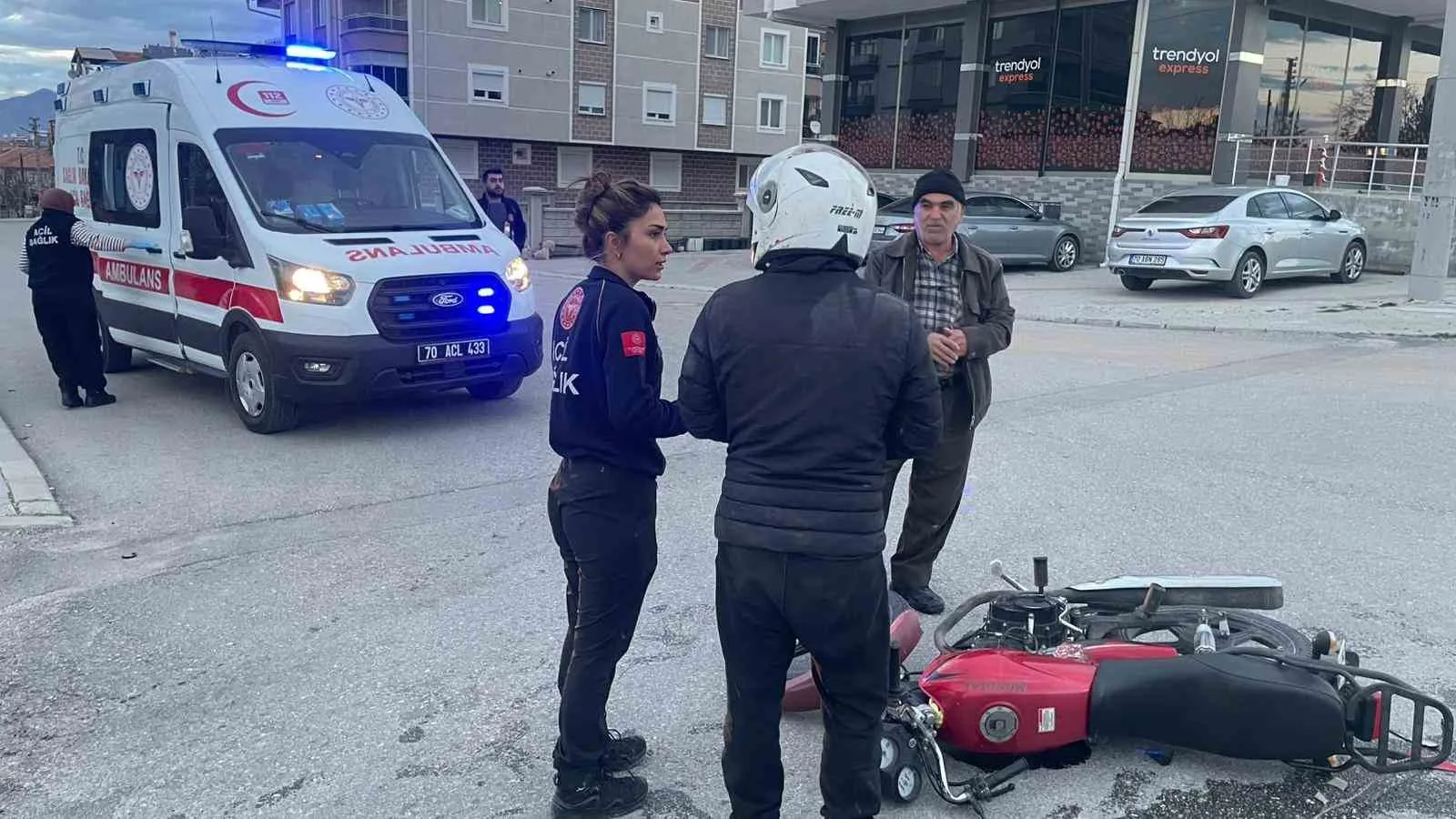 Karaman’da park halindeki otomobile çarpan motosikletin sürücüsü yaralandı. Yaralı sürücü hastaneye kaldırılarak tedavi altına alındı.