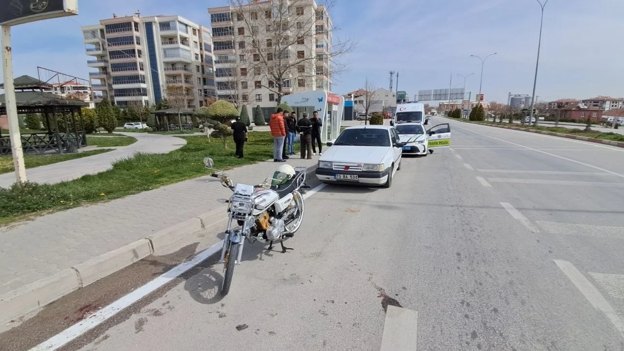 Karaman’da park halindeki otomobile çarpan motosikletin sürücüsü yaralandı. Yaralı sürücü hastaneye kaldırılarak tedavi altına alındı.