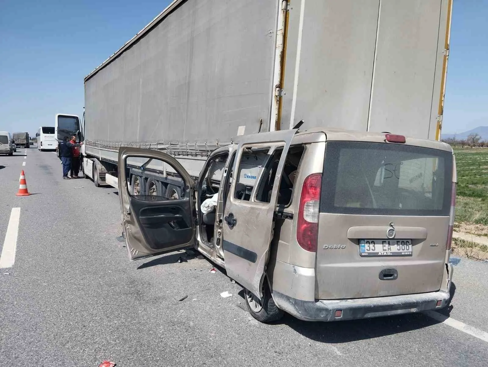 Karaman’da hafif ticari aracın tır dorsesine arkadan çarpması sonucu meydana gelen kazada 21 yaşındaki sürücü ağır yaralandı. Araç adeta dorsenin altına saplandı.