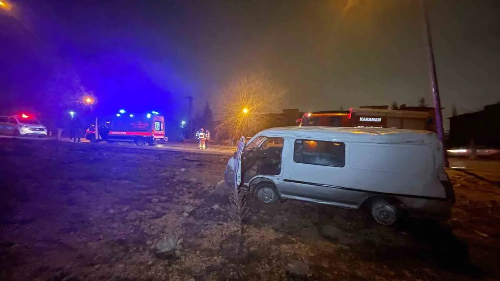 KARAMAN (İHA) – Karaman’da akşam saatlerinde meydana gelen trafik kazasında, yağışın etkisiyle kontrolden çıkan panelvan minibüs takla attı. Araçta bulunan 2 kişi kazayı yara almadan atlattı.