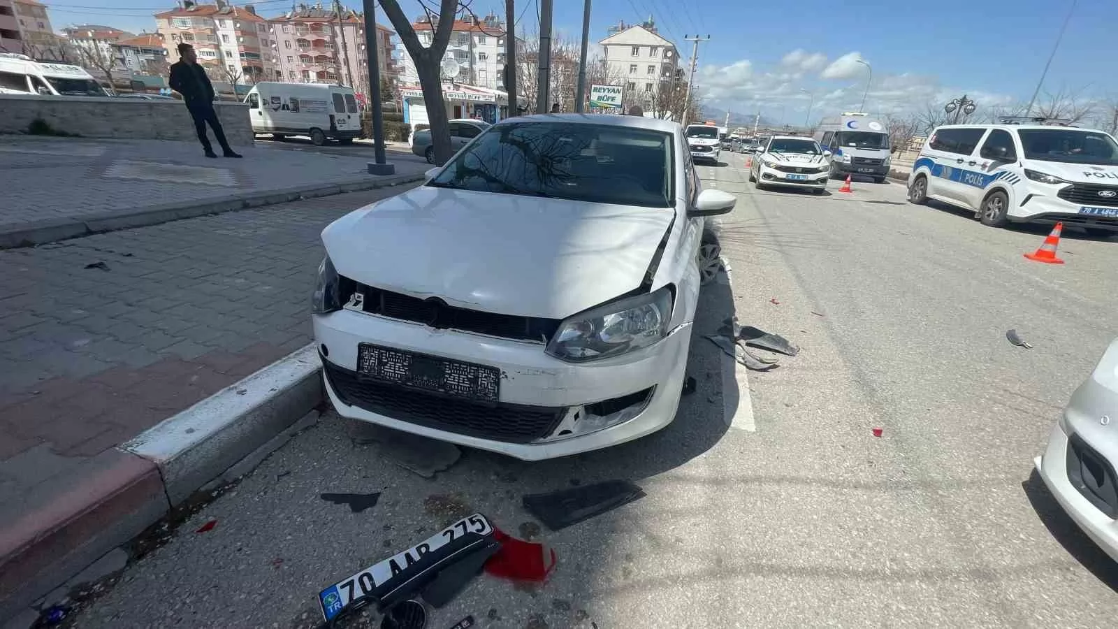 Çarpmanın etkisiyle savrulan otomobil, önünde park halinde bulunan 70 DU 397 plakalı başka bir araca çarparak zincirleme kazaya neden oldu.